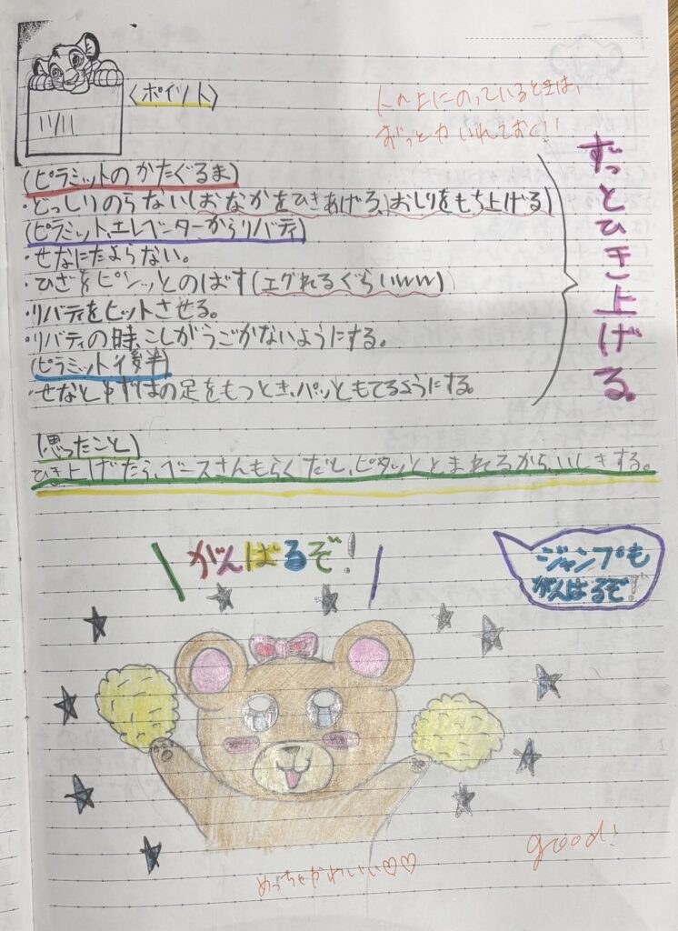 **「考えて練習する力」「自分で成長を管理する力」**も大切にしチアノートを通して主体的に取り組む姿勢を育てていきます。